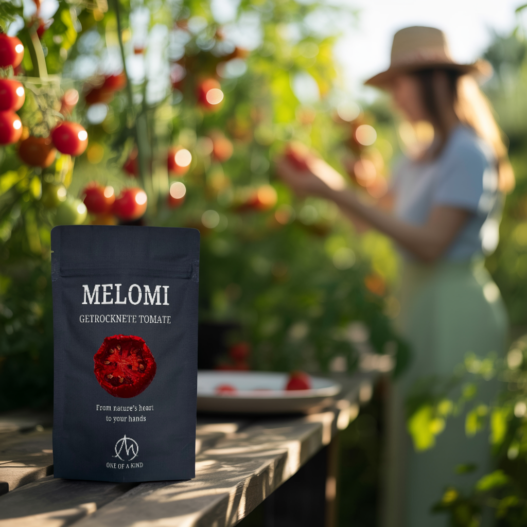 Melomi bietet 18 verschiedene Trockenfrüchte – darunter auch besondere Varianten wie Tomate und Zwiebel – alles sorgfältig ausgewählt, von Hand verarbeitet und ohne Zucker oder Zusatzstoffe. Die Früchte stammen aus dem Iran, wo sie unter idealen Bedingungen wachsen und mit höchstem Anspruch an Reife und Qualität geerntet werden. Produziert wird saisonal und in kleinen Mengen – Qualität statt Masse.